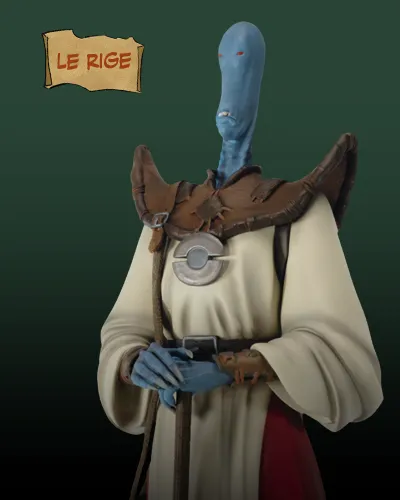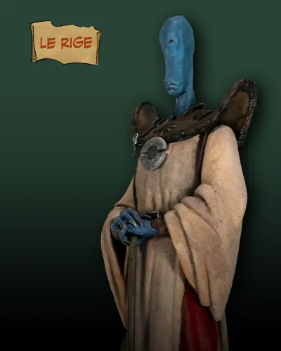 Le Rige, redoutable guerrier légendaire, considéré comme l’être le plus dangereux d’Akbar. Froid, taciturne et implacable, nombre de guerriers l’ont défié, mais aucun n’en est revenu en vie.