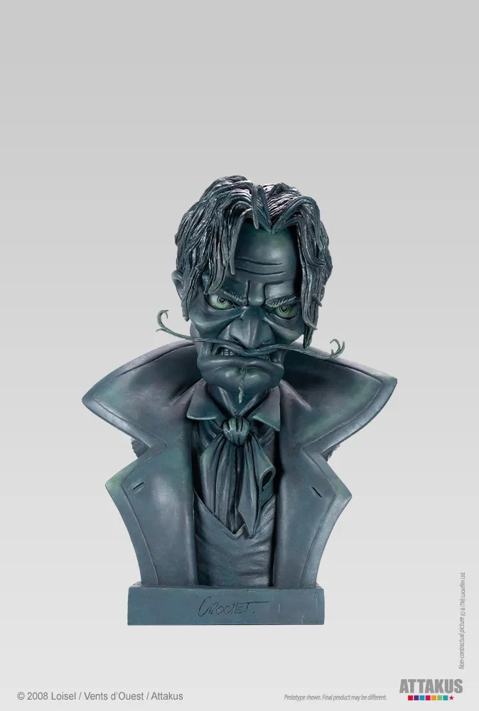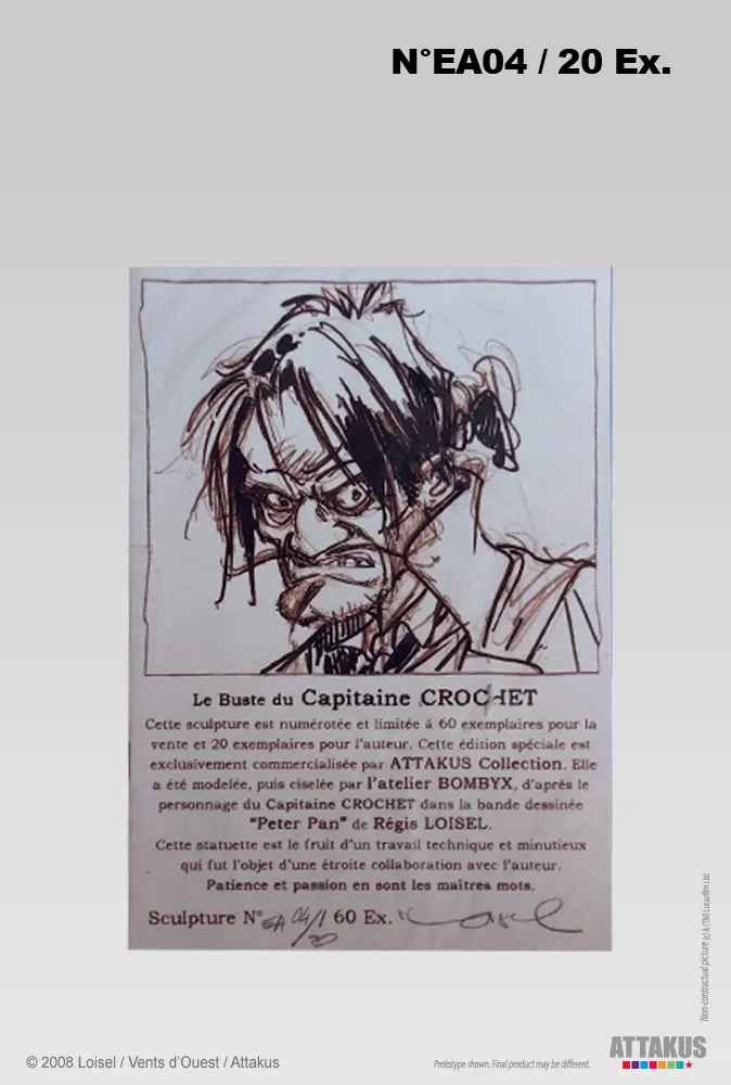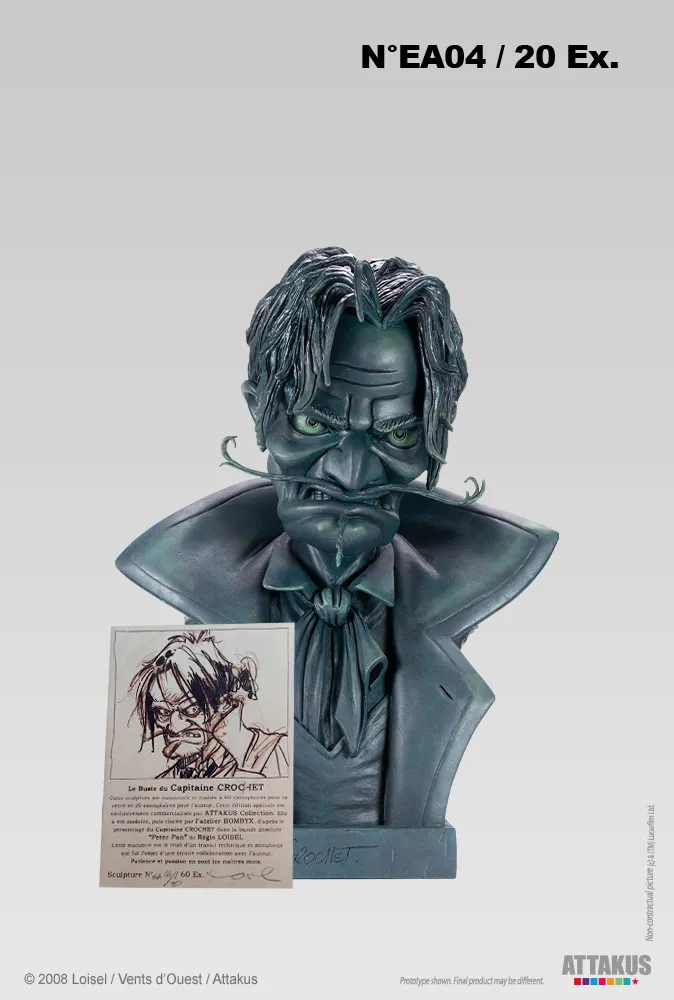 Cette pièce a été sculptée à l’occasion de l’exposition rétrospective consacrée à Régis Loisel en 2008 au CNBDI d’Angoulême, Régis Loisel ayant obtenu le Grand Prix du festival l’année précédente. Ce buste en résine monochrome échelle 1 représente le capitaine Crochet, tel qu’il est dessiné par Régis Loisel dans sa série Peter Pan, (Vents d’Ouest).